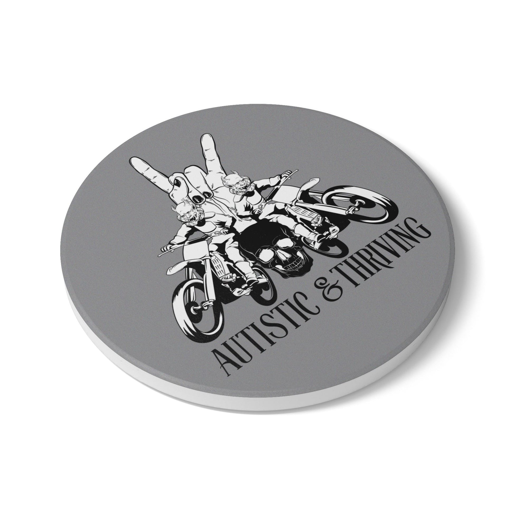 Add a touch of style and function to any tabletop with Meltdownerz Autistic & Thriving ceramic coaster. Designed to handle both hot and cold drinks, they protect surfaces from spills, stains, and heat damage with ease. Each coaster features a smooth ceramic top, shielding our custom design and a non-slip cork backing to keep it firmly in place. Easy to clean and perfect for everyday use.