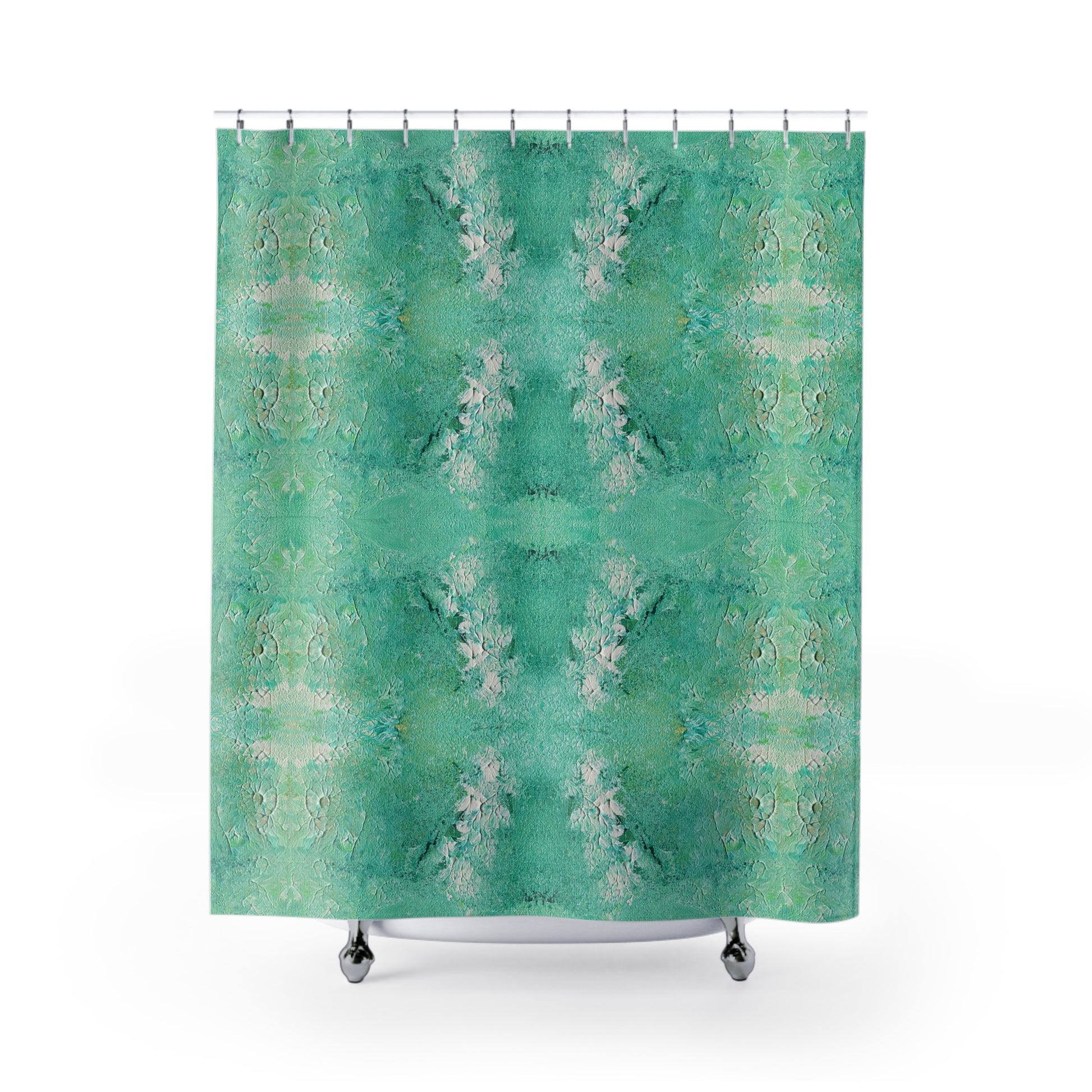 Elevate any bathroom with an abstract touch with Meltdownerz Chlorophyll shower curtain. Crafted from durable 100% polyester, it showcases our unique Meltdownerz design with vivid clarity while maintaining its fresh, like-new appearance over time. Ideal for adding originality to your space, this shower curtain is both functional and decorative.