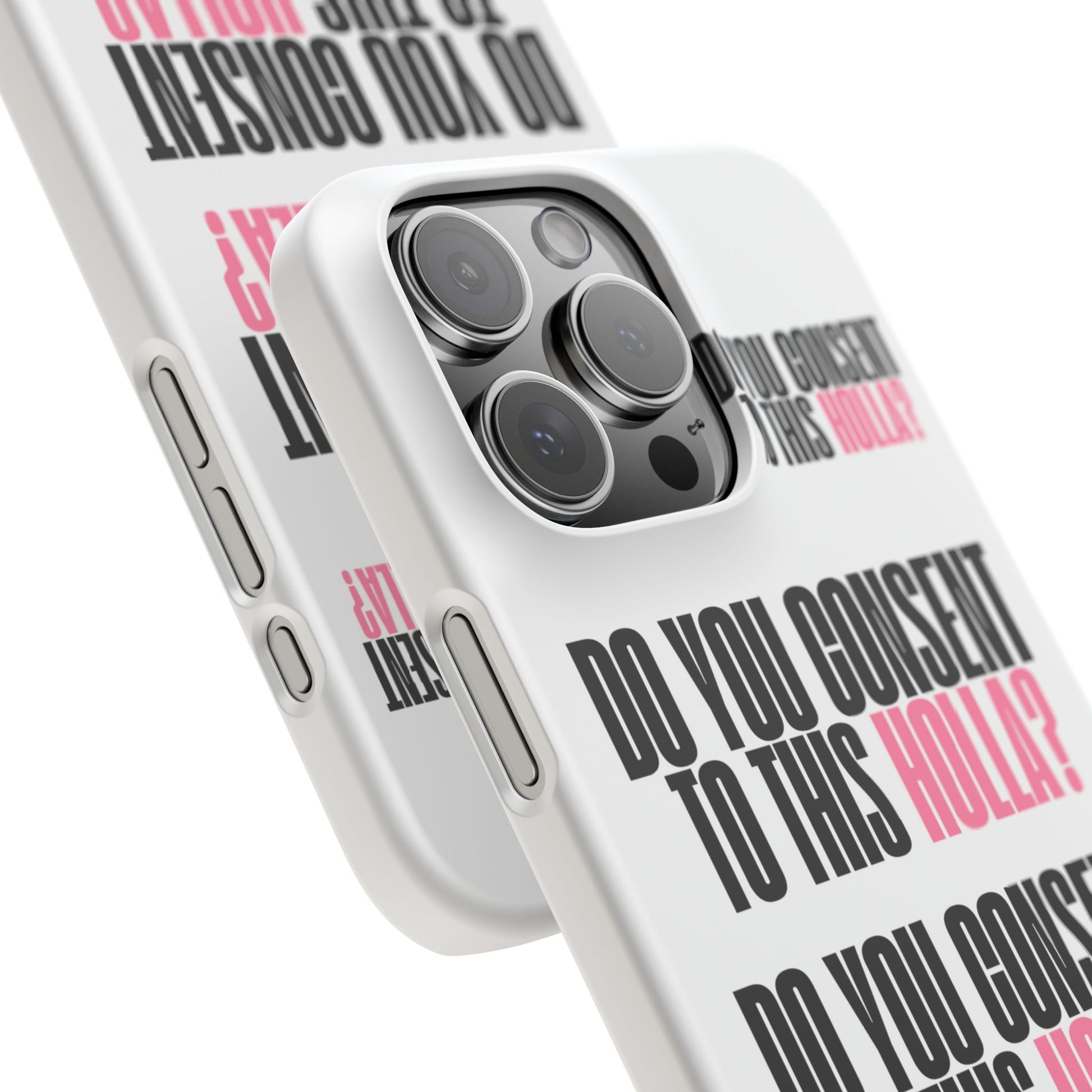 Protect your device in style with Meltdownerz Do You Consent To This Holla phone case. Made from durable 100% polycarbonate, it offers a sleek, lightweight design while keeping your phone safe from scratches and everyday wear. Our unique artwork is printed in vibrant detail on a smooth matte finish, making it as stylish as it is functional. Plus, it supports wireless charging for effortless connectivity.