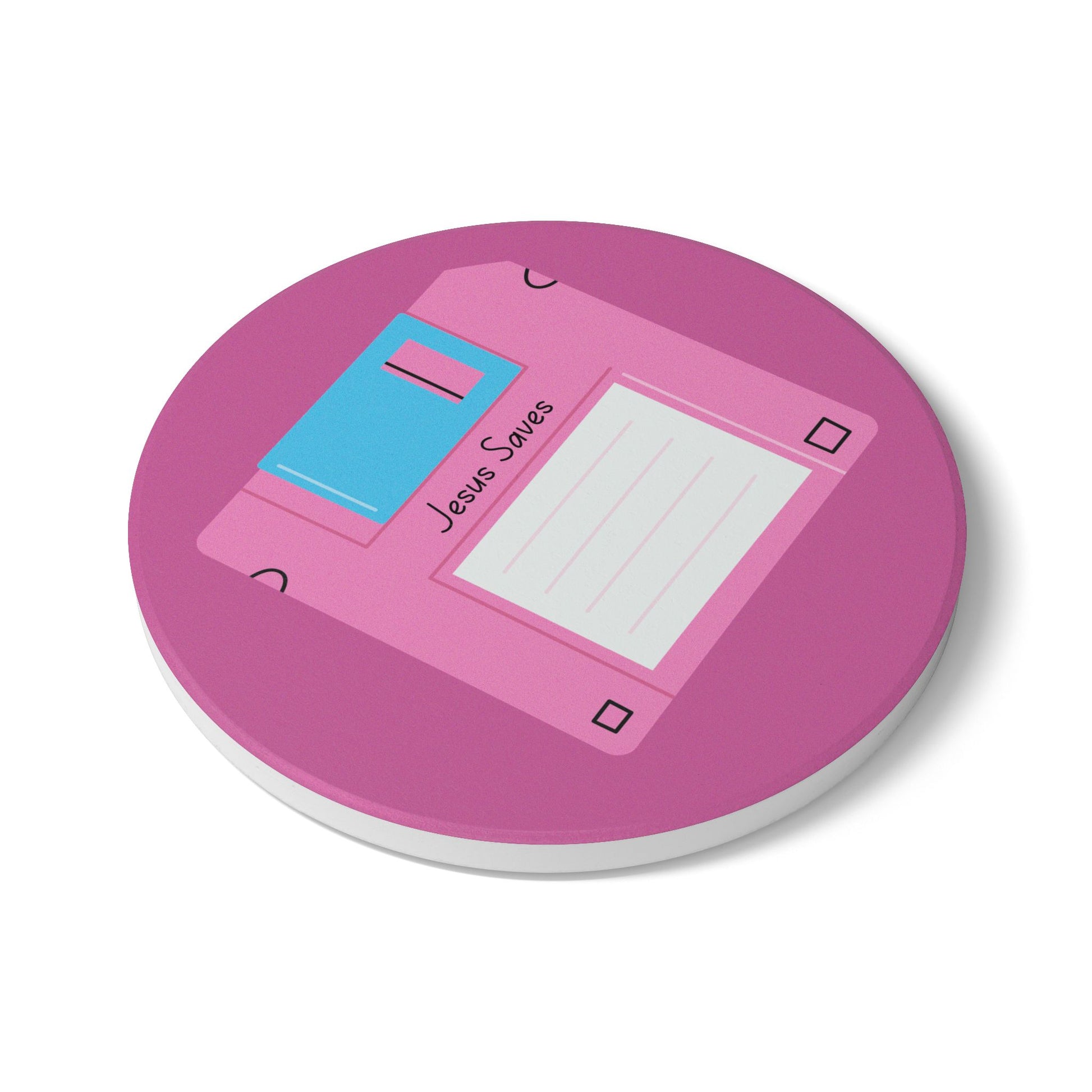 Add a touch of style and function to any tabletop with Meltdownerz Jesus Saves ceramic coaster. Designed to handle both hot and cold drinks, they protect surfaces from spills, stains, and heat damage with ease. Each coaster features a smooth ceramic top, shielding our custom design and a non-slip cork backing to keep it firmly in place. Easy to clean and perfect for everyday use.