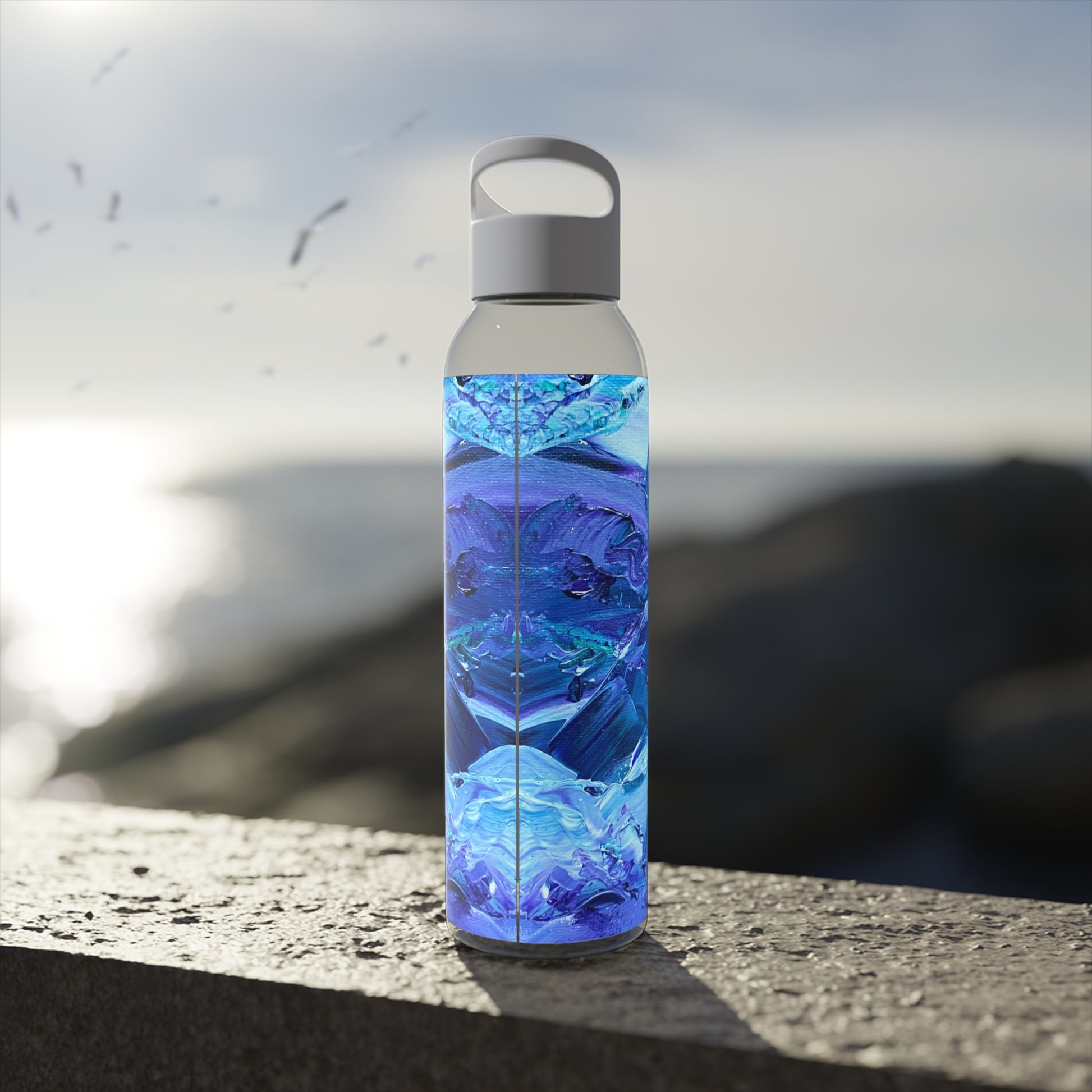 Stay hydrated in style with Meltdownerz Waves Of Sapphire Sky Water Bottle! Featuring an eye-catching design from our abstract art collection, this bottle is made from durable Eastman Tritan™ material and is reusable, lightweight and perfect for everyday use. The twist-on lid ensures easy, spill-free drinking, making it both functional and fashionable for your on-the-go lifestyle.